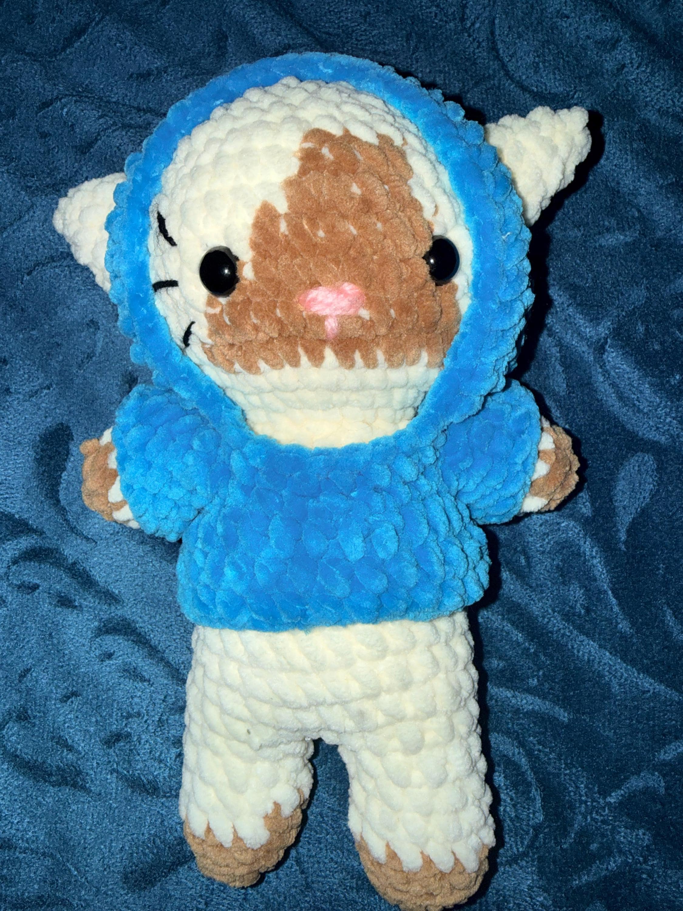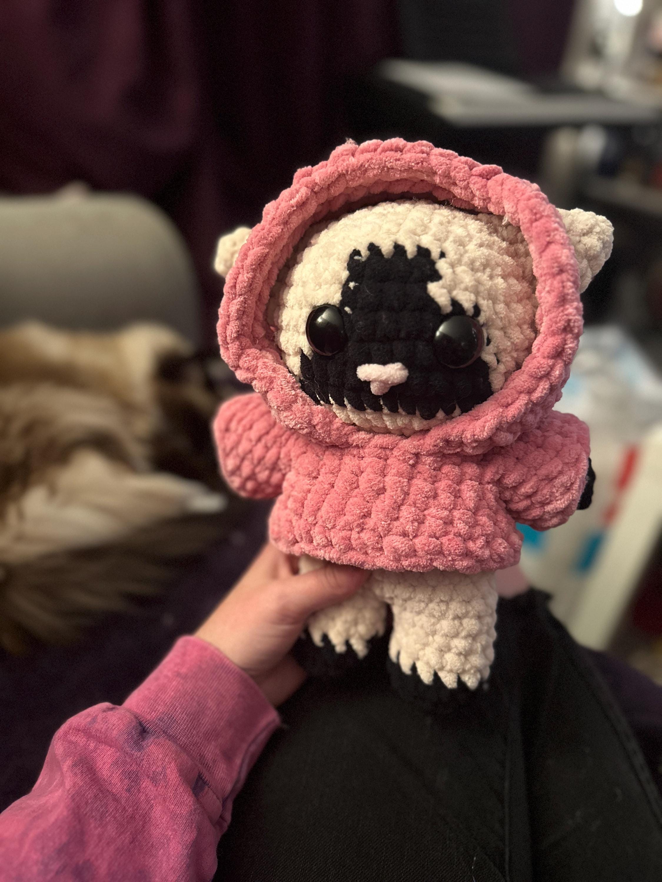 • The finished plushie measures 8 inches tall (depending on yarn used).